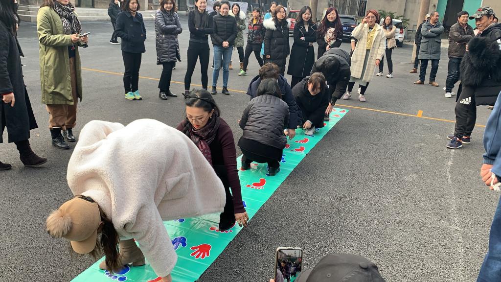 参加活动人员在教练指挥下,被随机分成4个队,经过队员集体讨论,各队确定了队长。正式活动分为两个部分,一是消防演练,二是教工职工户外素质拓展。消防演练部分包括灭火器使用知识讲解、手提灭火器灭火接力两部分;户外素质拓展部分由 “一圈到底”、“手脚并用”、“公鸡下蛋”等3个项目。“一圈到底”考察团队合作、“手脚并用”需要灵活协调、“公鸡下蛋”强调快乐分享,看似简单的项目,要想完美完成也非易事。老师们在场上密切配合、互相鼓励,为自己出色表现而热烈鼓掌,现场欢声笑语一片。