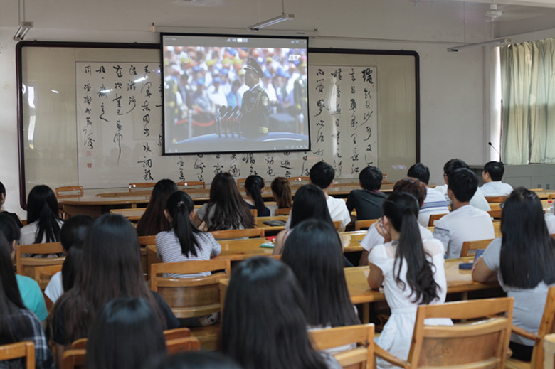 9月3日早晨,关于2014级共计319名员工在学院领导组织带领下在中心体育场参加纪念中国人民抗日战争暨世界反法西斯战争胜利70周年升旗仪式。升旗仪式结束后,60余名员工入党积极分子和部分学院领导在学院会议室集中收看了纪念大会及阅兵式实况。