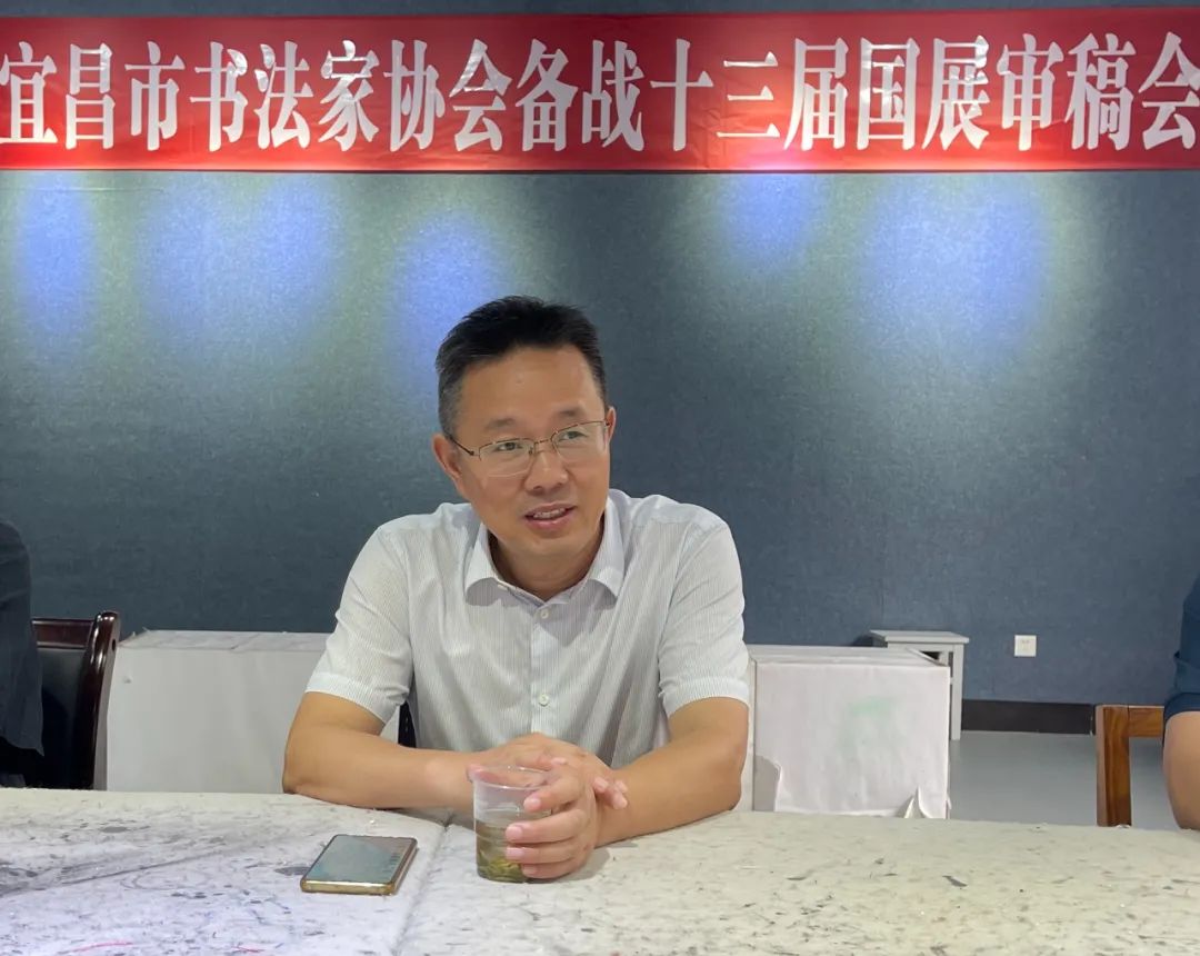 评审开始前,周德聪主席代表市书协欢迎省书协评审专家到宜昌检查指导备战工作。吴永斌副主席代表省书协介绍了省书协备战国展工作思路和评审原则。市文联副主席李扬致欢迎辞。市摄影家协会副秘书长、书协理事陈波全程跟踪报道。经过公平、公正、公开评审,评选出45名国展骨干作者(不含中书协会员)。