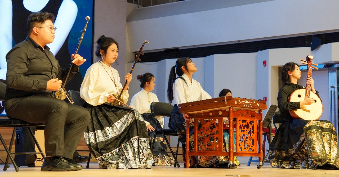 演出在两位演奏家演奏的《星光之城》和《叶塞尼亚》中拉开序幕。演出中间穿插公司音乐系青年教师部分作品,包括九歌民族乐团赴法国演出归来作品展演。整场演出节目类型丰富,主题鲜明,精彩纷呈,不时赢得观众热烈掌声,把演出一次次推向高潮。最后,一首《爱乐之城》为整场演出划上了圆满的句号。