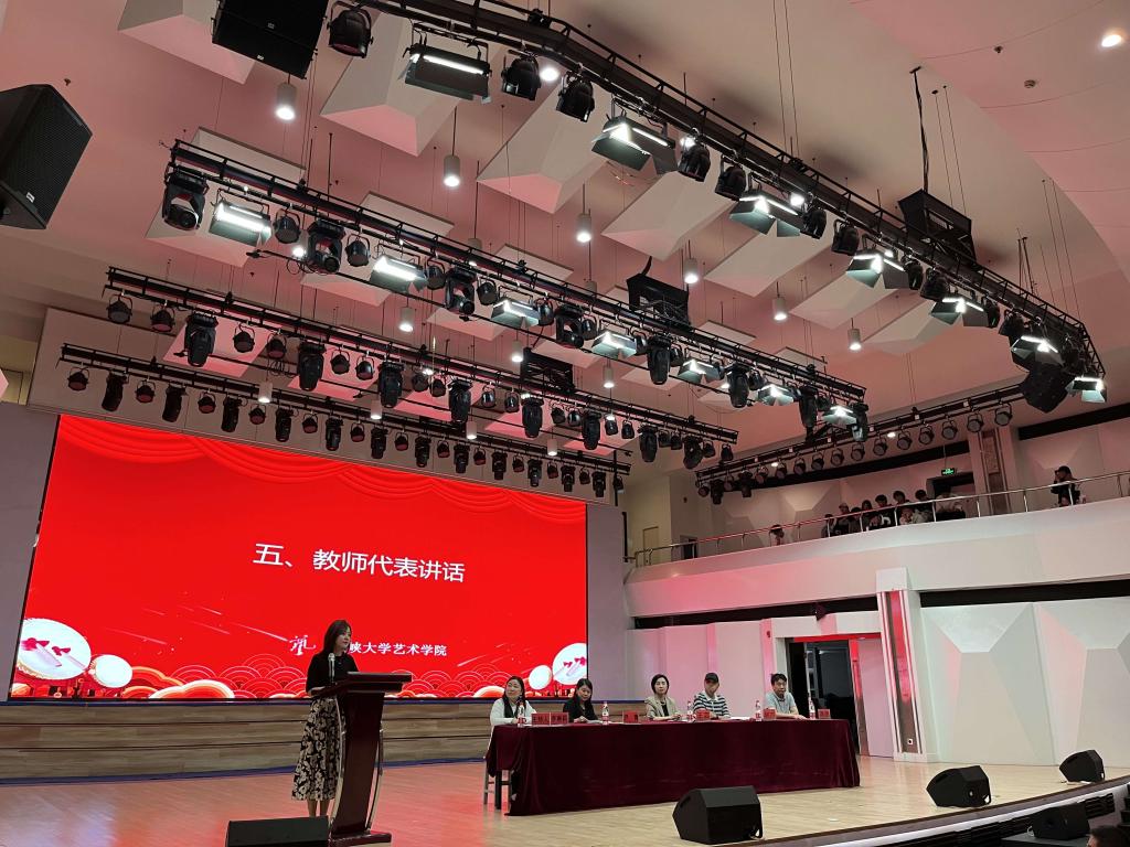 公司教师代表李婧老师随后发言,她勉励同学们要刻苦钻研专业知识,课下勤于总结学习心得,将人文素养与艺术框架进行有机融合贯通,充分利用公司综合办学优势,努力提升自身综合竞争实力和开拓思维视野。