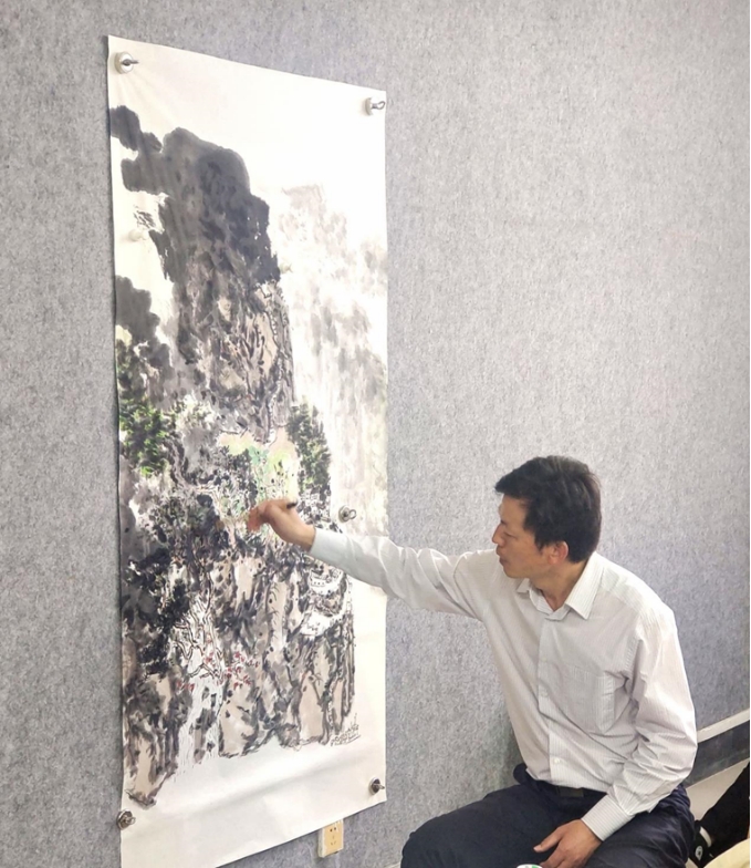 仪式结束后,王跃奎教授来到教室围绕“山水画创作”为ylzzcom永利总站线路检测美术系师生带来了一场别开生面的讲座。讲座现场气氛活跃、互动频繁,王跃奎教授边示范边讲解,其深厚的学术功底、专业的艺术素养让美术系师生和宜昌的艺术家们深受启发。此次活动进一步促进了ylzzcom永利总站线路检测美术专业学术氛围的营造,丰富了中国画山水课程的教学内容,开阔了广大师生的创作思维和眼界。