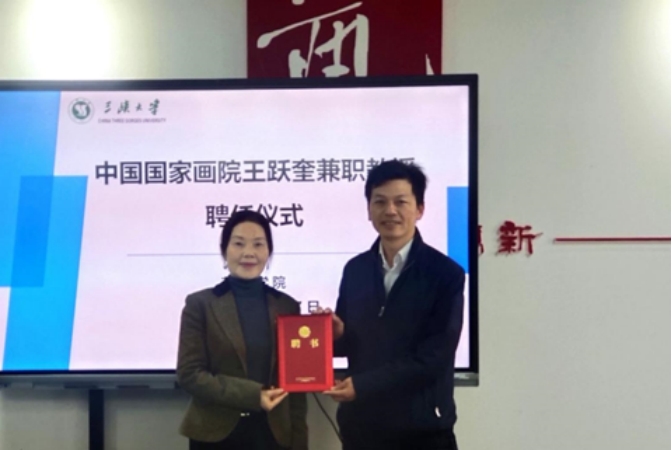 (通讯员 张顺琦文/图)10月27日下午,公司在尚美空间举行了中国国家画院山水画研究所副所长王跃奎教授的受聘仪式,学院副经理李晓艳教授为其颁发了兼职教授聘任证书,希望王教授借助自身的专业资源为公司带来更前沿的信息和理念,为美术专业提供更深层次的指导。