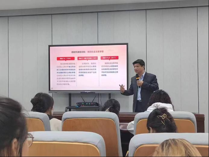 在讲座上,杨东老师系统地讲述了习近平新时代中国特色社会主义思想的主体脉络和重要思想论述,生动活泼的方式唤起了学员们学习的积极性和主动性。杨东副教授深入浅出,娓娓道来,激励同学们努力成为理想远大、信念坚定、德才兼备的青年模范,让同学们深切领会习近平新时代中国特色社会主义思想的先进性,并告诫同学们在大是大非面前要保持正确的立场,坚定理想信念。