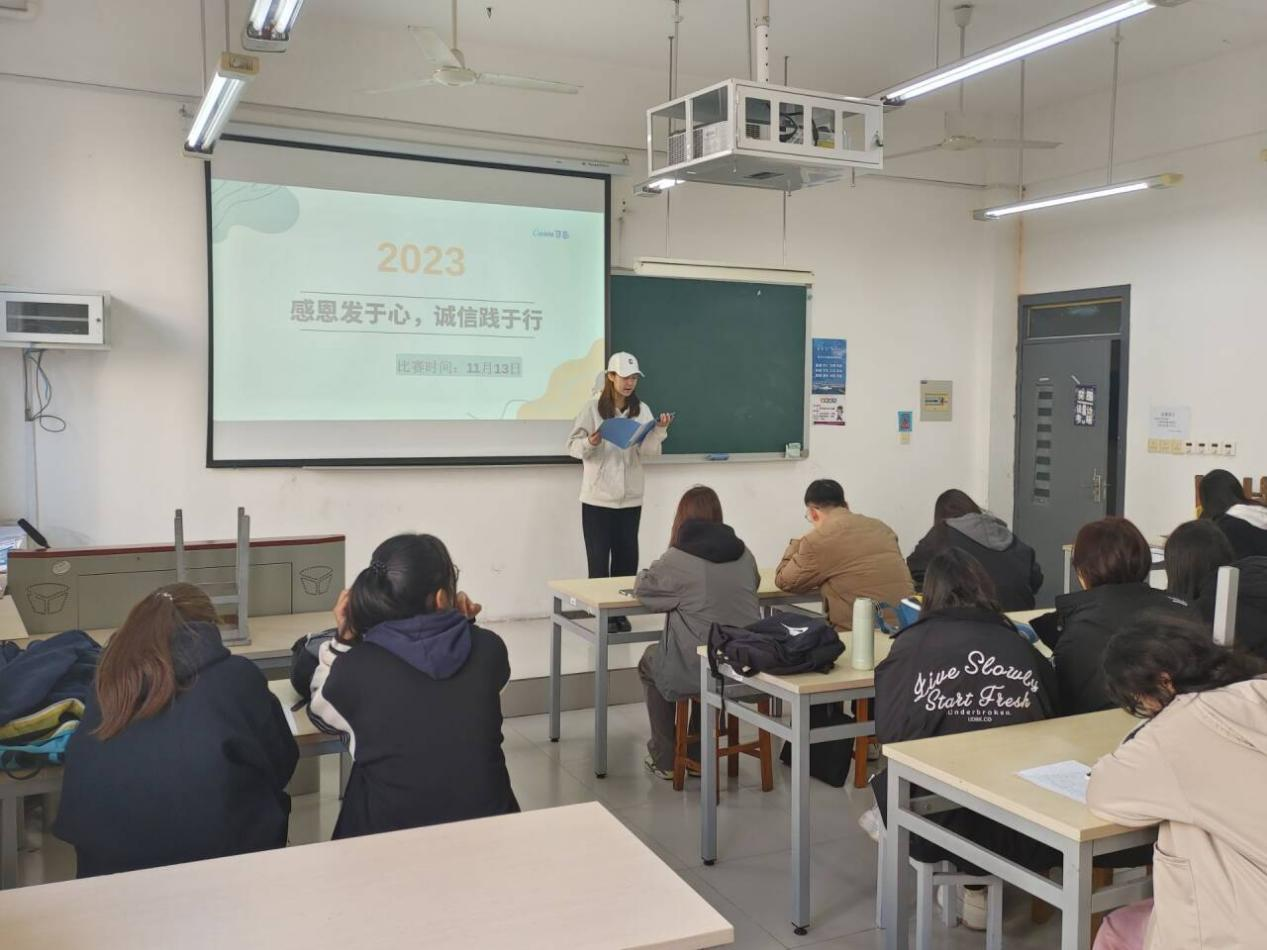 (通讯员 杜成杰/文 曾家辉/图)为贯彻落实校员工资助管理中心“筑梦感恩·诚信立身”感恩诚信主题教育系列活动,弘扬中华民族传统美德,全面提升员工的思想道德素质,培育员工感恩父母、感恩老师、感恩同学、感恩自然、感恩社会、感恩学校的意识,ylzzcom永利总站线路检测11月14日在逸夫楼Y3214举办了“感恩发于心·诚信践于行”主题演讲比赛初赛,共有来自ylzzcom永利总站线路检测各年级各专业的7名同学参赛。