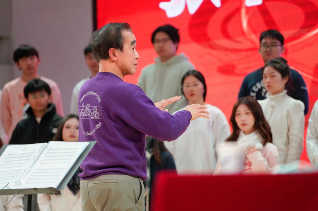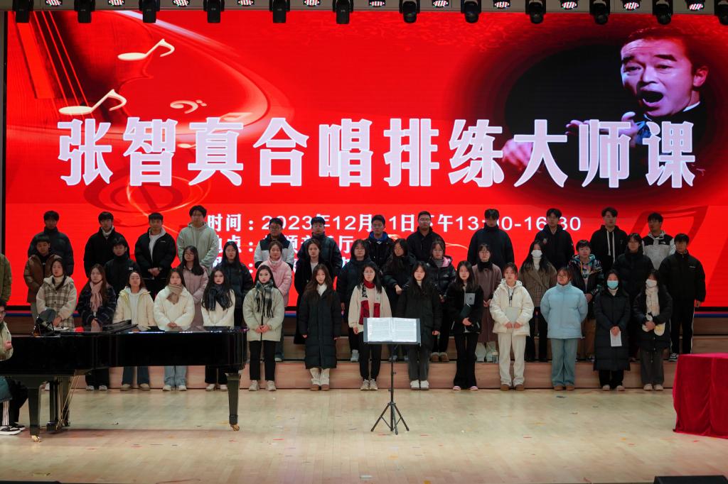 (通讯员 付传利/文/图)12月21日下午,张智真合唱排练大师课在橘颂音乐厅成功举办。蒋勇副经理代表学院对张智真博士的到来表示热烈欢迎,九歌合唱团指导老师李飞介绍了张智真博士的简历及其合唱指挥的职业经历,200余名音乐学专业员工参加活动。