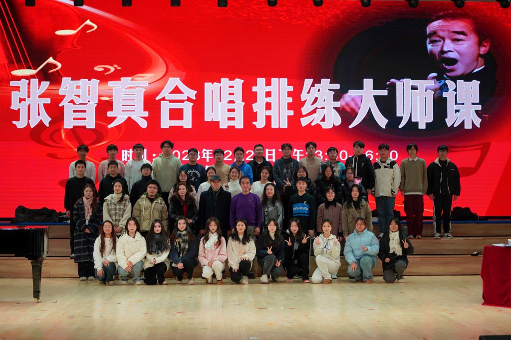 大师课结束后,张智真博士、院领导以及九歌合唱团全体成员进行合影留念。