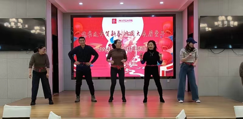 活动由舞蹈系教师带来的互动舞蹈《相亲相爱》拉开帷幕,欢快的节奏、奔放的动作,全场老师的热情参与,立刻使现场气氛沸腾了起来。随后,精彩节目轮番上演,欢呼声、叫好声一浪高过一浪,在现场久久回荡。机关工会小组主持的运动项目《公鸡下蛋》,既锻炼了身体又愉悦了心情;美术系教师表演的《小人儿舞》,新颖别致、风趣幽默,让人忍俊不禁;美术系翟宗选老师演唱的歌曲《滚滚长江东逝水》,宽博浑厚的嗓音、自信沉着的表演,不禁让人怀疑他是不是一位被绘画耽误了的歌唱家;设计系教师集体朗诵的幽默诗《我爱上班》,自嘲中包含了向上的力量;赵方经理表演的湖北大鼓《丰收场上》,韵味悠长、纯正地道,自创的民歌《船行千里要回来》,旋律优美、情感细腻,在感受专业魅力的同时给人以艺术享受。最后,音乐系4位声乐教师倾情演绎的《春风十万里》,让人如沐春风、心旷神怡,同时也把联谊活动推向了高潮。