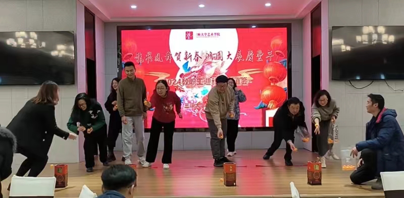 本次活动分为趣味运动篇、文艺节目篇、温馨和谐篇三个部分。趣味运动项目和文艺节目分别由4个工会小组提供、同时主持,体现了人人参与、人人是主角、集体活动大家办的工会活动举办理念。活动当日,恰巧是音乐系周箐老师的生日,温馨和谐篇专门策划了为周老师过生日的环节,很好地营造了温馨的现场氛围。为增强活动的参与性和娱乐性,活动设置了参与奖和幸运奖抽取环节,凡参加趣味运动项目、互动游戏、文艺表演的老师均可以获得一次抽取参与奖的机会;活动过程中还穿插了两轮由学院领导班子成员、党委委员抽取幸运奖的环节,共有10名老师获得幸运奖,2名教师获得全场最佳幸运奖。在文艺节目表演过程中,赵方经理发表了新年贺词,他感谢广大教职工一年来的辛勤付出,祝贺全院教职工在新的一年里家庭幸福、身体健康、事业进步。